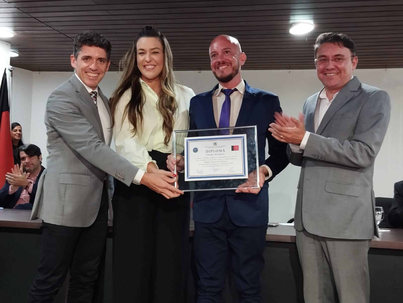 Feliz e emocionado pelas homenagens que também recebeu dos colegas de profissão, Thiago Moraes manifestou a sua gratidão por receber a honraria. “É um prazer inenarrável essa homenagem conferida pela Assembleia Legislativa, através do deputado Raniery Paulino e entregue hoje pelo deputado Tovar Correa Lima. Essa homenagem é para mim a celebração de todo um trabalho e dedicação ao estado da Paraíba e o reconhecimento e o carinho que desde que cheguei aqui tenho recebido do povo paraibano”, declarou.