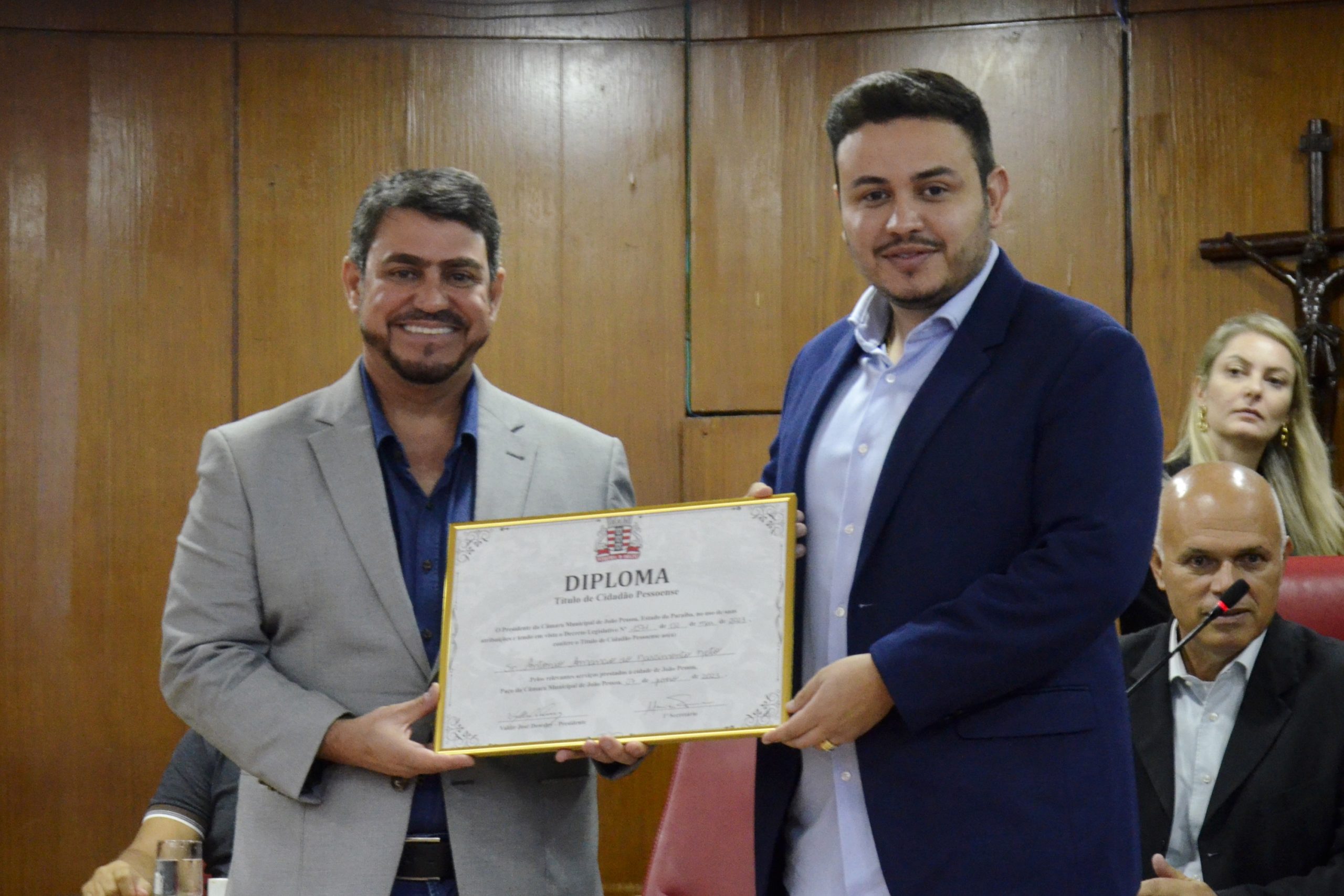 Na tarde desta quarta-feira (07), a Câmara Municipal de João Pessoa (CMJP) realizou sessão solene para entrega do título de cidadão pessoense a Antônio Amâncio do Nascimento Neto (Antônio Mandarrari). A sessão foi proposta pelo presidente da CMJP, vereador Dinho (Avante).