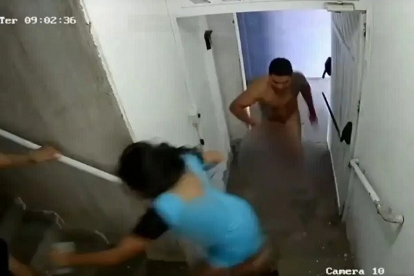 Imagens de uma câmera de segurança registraram o momento em que o casal tenta fugir do autor do ataque. Eles entram em um prédio do conjunto habitacional e são perseguidos enquanto sobem uma escada. Os três caem e lutam.