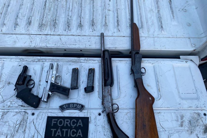 No local, a guarnição apreendeu um revólver calibre 38, uma pistola 380, e duas espingardas, sendo uma calibre 12 com cano e outra calibre 22, com cartuxo. De acordo com a Polícia Militar, o suspeito teria outras armas e munições no bairro de Tibiri, em Santa Rita.