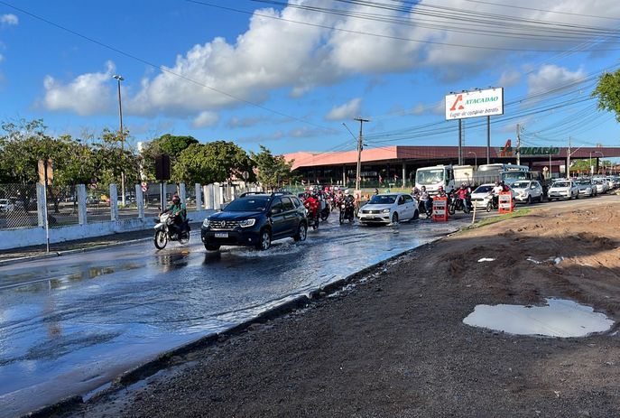 Um vazamento de água registrado desde as primeiras horas na manhã desta terça-feira (13), deixou o trânsito ainda mais complicado no desvio montado para as obras na rodovia BR-230, bairro de Água Fria, em João Pessoa. Condutores enfrentam lentidão na Rua Diógenes Chianca.