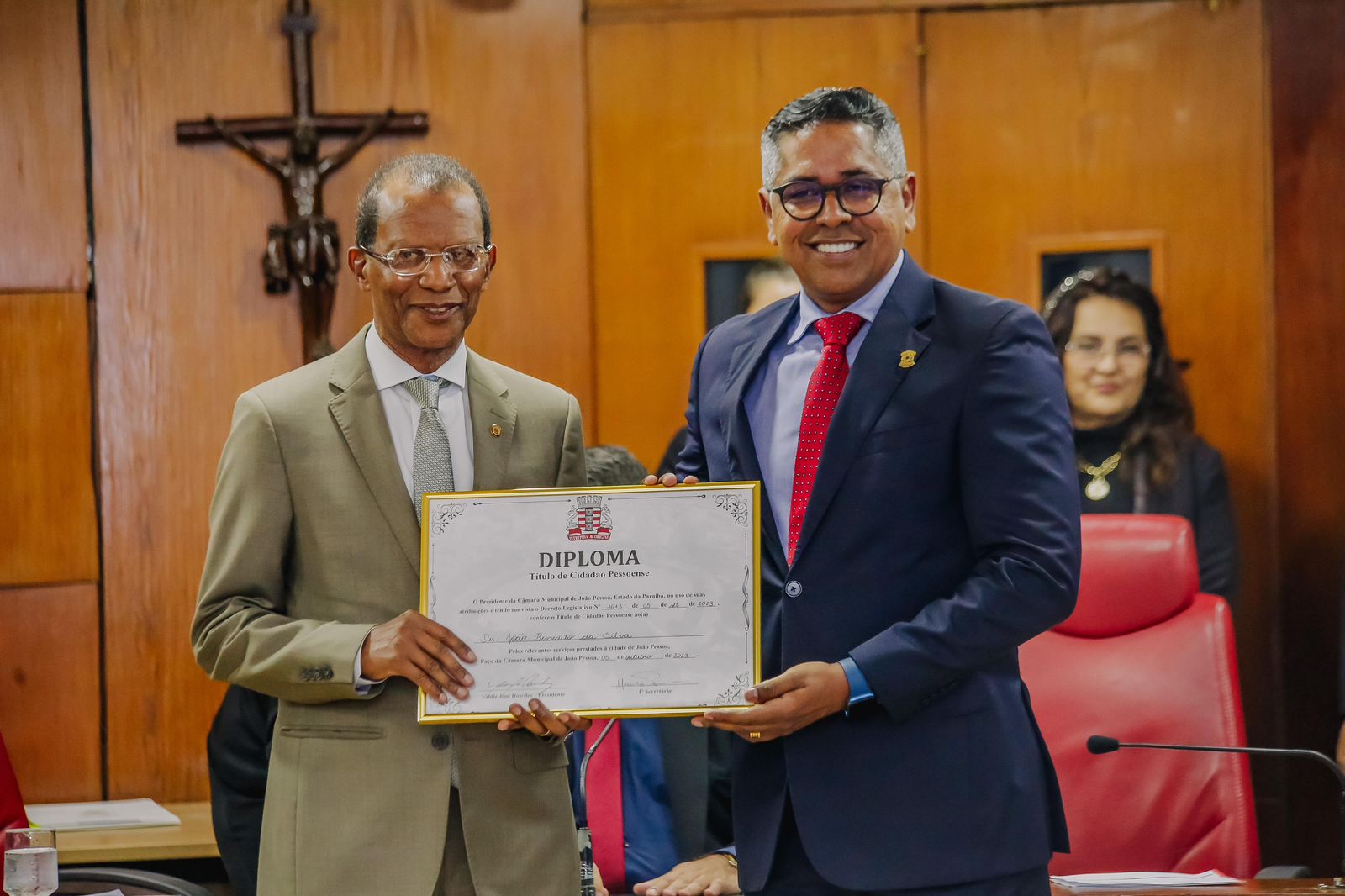 “A vida, a história, o trabalho e o compromisso pela justiça do presidente João Benedito faz com que nos sintamos todos muito felizes e honrados em ser conterrâneos dele aqui na cidade de João Pessoa. Ele vai receber também o título em São José de Piranhas. É o fruto do reconhecimento, e sempre é bom se fazer as homenagens, o reconhecimento ao trabalho e a dedicação das pessoas enquanto vida, porque dessa forma estamos demonstrando o nosso reconhecimento, a sua honradez e o seu compromisso de servir a causa pública. Fico muito feliz em ter o prazer de ser conterrâneo dele como cidadão paraibano, como cidadão pessoense e também como cidadão piranhas. Obrigado. Obrigado!”, ressaltou o prefeito.