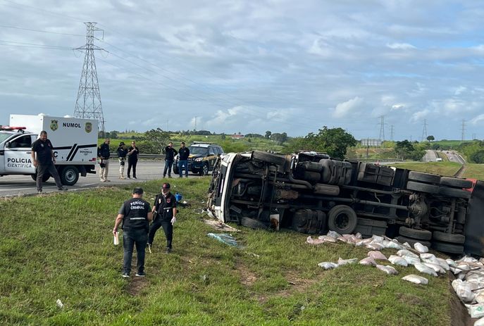 Em um trágico acidente ocorrido na madrugada deste sábado (7), uma carreta que seguia em direção ao Rio Grande do Norte capotou na BR-101, na Paraíba, resultando na morte do motorista. Segundo informações da Polícia Rodoviária Federal, o condutor, identificado como Felipe Xavier de França, teria cochilado ao volante, perdendo assim o controle do veículo.