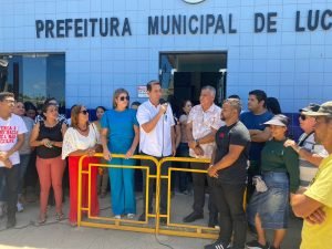 Na Prefeitura, após a carreata, Léo Bandeira, Bolão e vereadores da bancada fizeram pronunciamentos para uma multidão que se encontrava presente