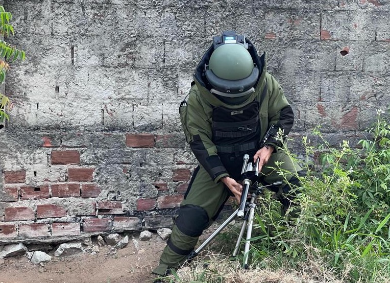 A Polícia Militar através do Esquadrão Antibombas do Grupamento de Ações Táticas Especiais (Gate) desativou uma granada, nesta segunda-feira (20), na grande João Pessoa. A ação aconteceu na comunidade São Lourenço, em Bayeux, durante ações de combate ao tráfico de drogas.