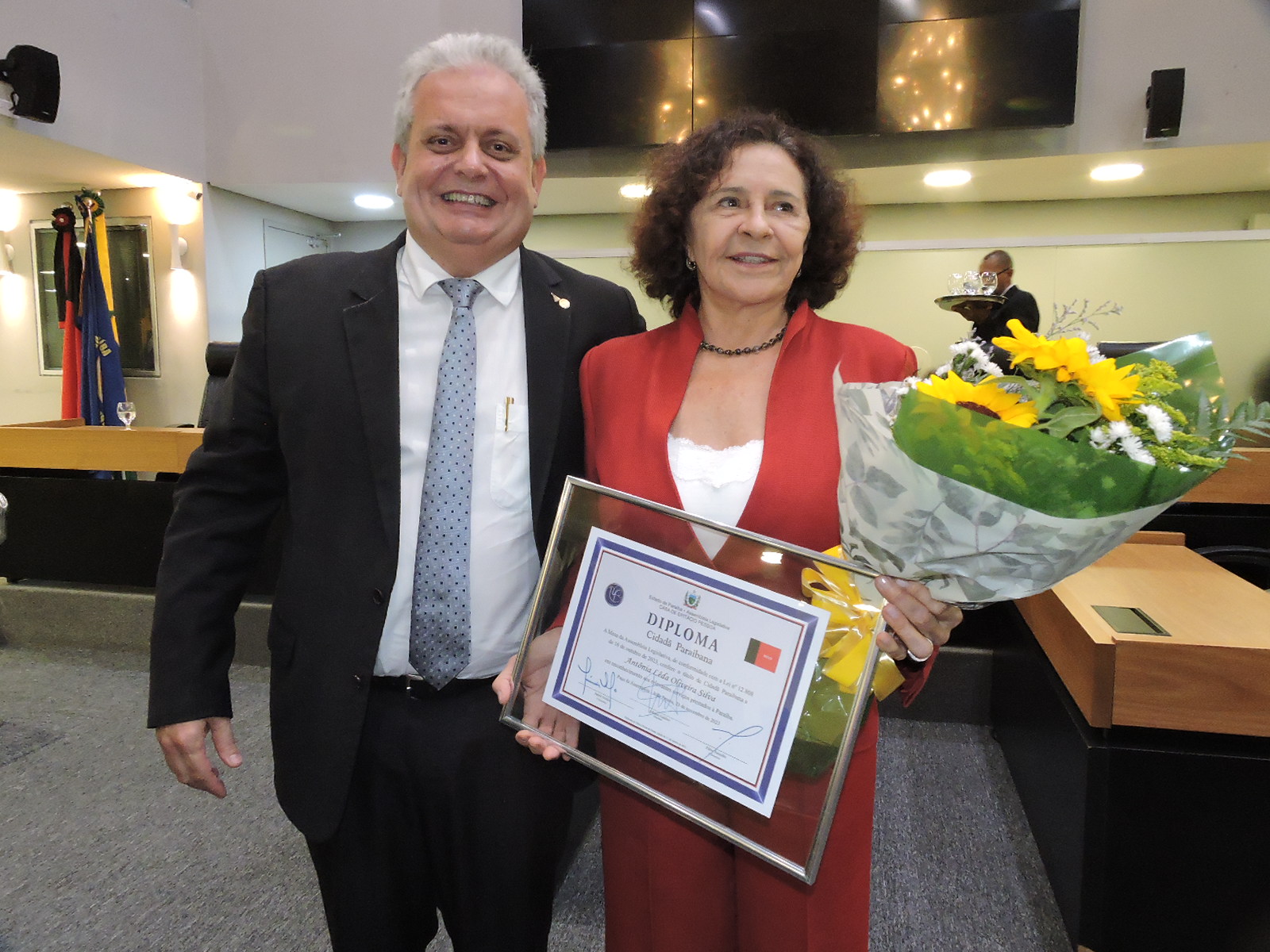 O professor João Euclides Fernandes Braga, diretor do Centro de Ciências da Saúde (CCS), da UFPB, parabenizou o deputado Bosco Carneiro pela propositura, destacando que a professora Antônia é uma paraibana de coração, com um trabalho extenso dedicado à formação de profissionais na área da saúde, no Centro de Ciências da Saúde da Universidade Federal da Paraíba. “Uma pesquisadora de renome internacional; uma pessoa que contribuiu muito com a pós-graduação na UFPB; criou o Instituto Paraibano de Envelhecimento, hoje consolidado na instituição, que cuida da saúde física, mental e social de uma população muito especial no momento que são os idosos. Então, por tudo isso e muito mais, a professora Antônia é digna dessa honraria, desse reconhecimento desta casa que é do povo”, declarou.