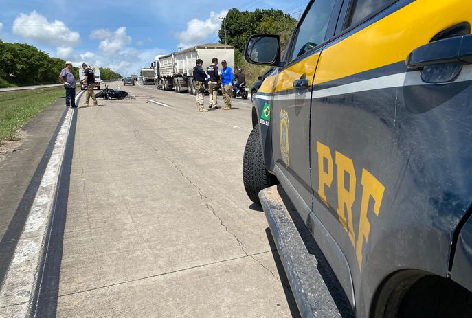 Um motociclista, de 31 anos, morreu em um acidente envolvendo um caminhão na manhã desta sexta-feira (8) na BR-101, em Alhandra, na Paraíba. Uma passageira que também estava na motocicleta ficou ferida.