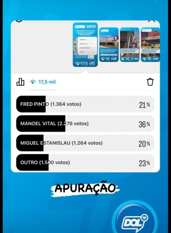 No quadro de escolhas, os nomes dos apontados pelo Portal foram do empresário e Secretário de Estado Fred Pinto, do esposo da ex-prefeita do Município Leonice Lopes, Vital Neto, do ex-prefeito Miguelzinho e “outro”.