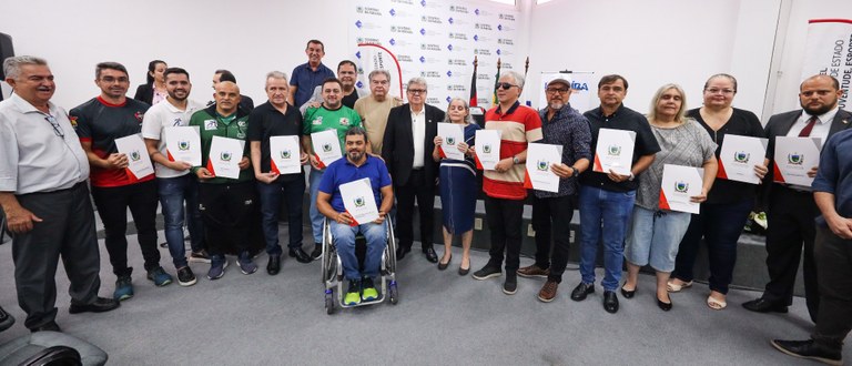 governador João Azevêdo formalizou, nesta sexta-feira (9), o pagamento do Paraíba Esporte Total a entidades e clubes que desenvolvem o desporto e o paradesporto de alto rendimento. No total, foi destinado R$ 1 milhão a 12 entidades que cumpriram os requisitos previstos pela legislação do programa. A solenidade aconteceu no auditório da Companhia de Desenvolvimento da Paraíba (Cinep), em João Pessoa.