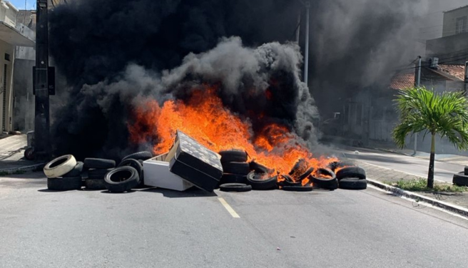Um protesto interditou, nesta segunda-feira (10), a Avenida Cruz das Armas, em João Pessoa. Moradores fecharam a via com pneus e atearam fogo em protesto contra a PM e pelo  jovem Gabriel de 22 anos, que foi baleado por um policial militar, durante uma abordagem na madrugada do último sábado (8).