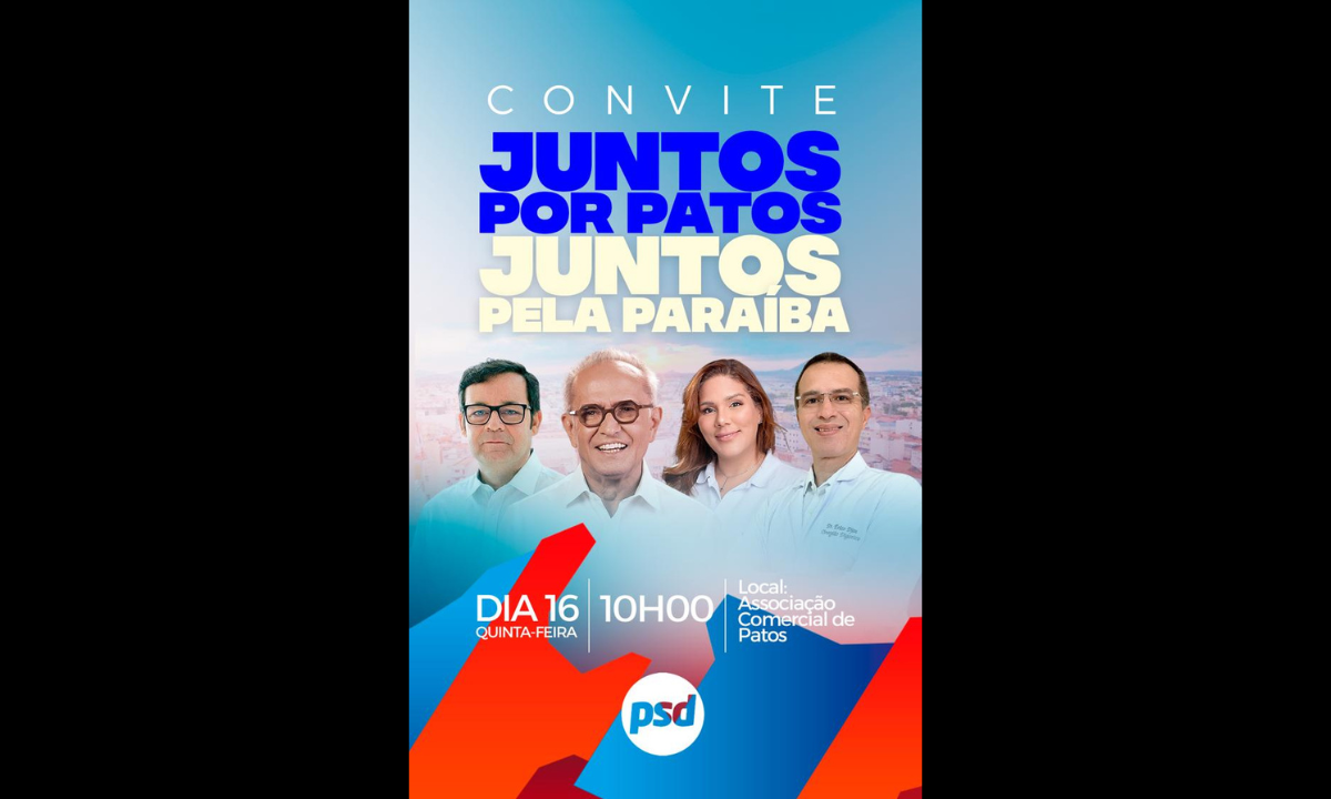 A iniciativa visa consolidar a liderança de Cícero Lucena, que, conforme informações divulgadas, lidera com folga em todas as pesquisas e enquetes locais na região. O encontro também servirá para lançar a candidatura de Germana Wanderley à deputada federal pelo PSD, reforçando a aliança em torno do nome de Lucena. Conforme informações divulgadas, o líder médico e ex-deputado estadual mais votado de Patos, Érico Djan do MDB, e o professor e advogado Ramonilson Alves, já confirmaram presença e anunciarão seu apoio político.